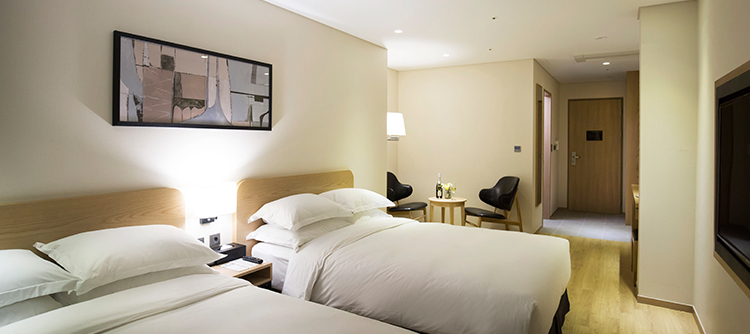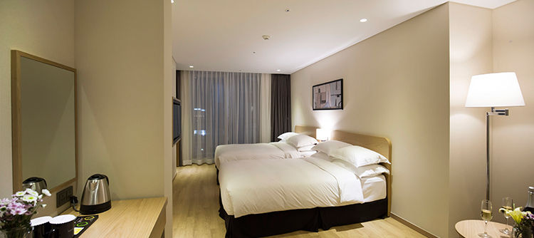 当ホテルはデラックスファミリルームを6部屋ご用意しており、ダブルベッドが2台があります。美しい海雲台の海がテラスで眺望でき、リゾート気分でリラックスした空間をご提供致します。